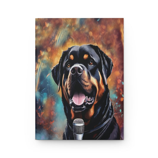 Hardcover Journal Matte - Rottweiler on the Mic - Brown